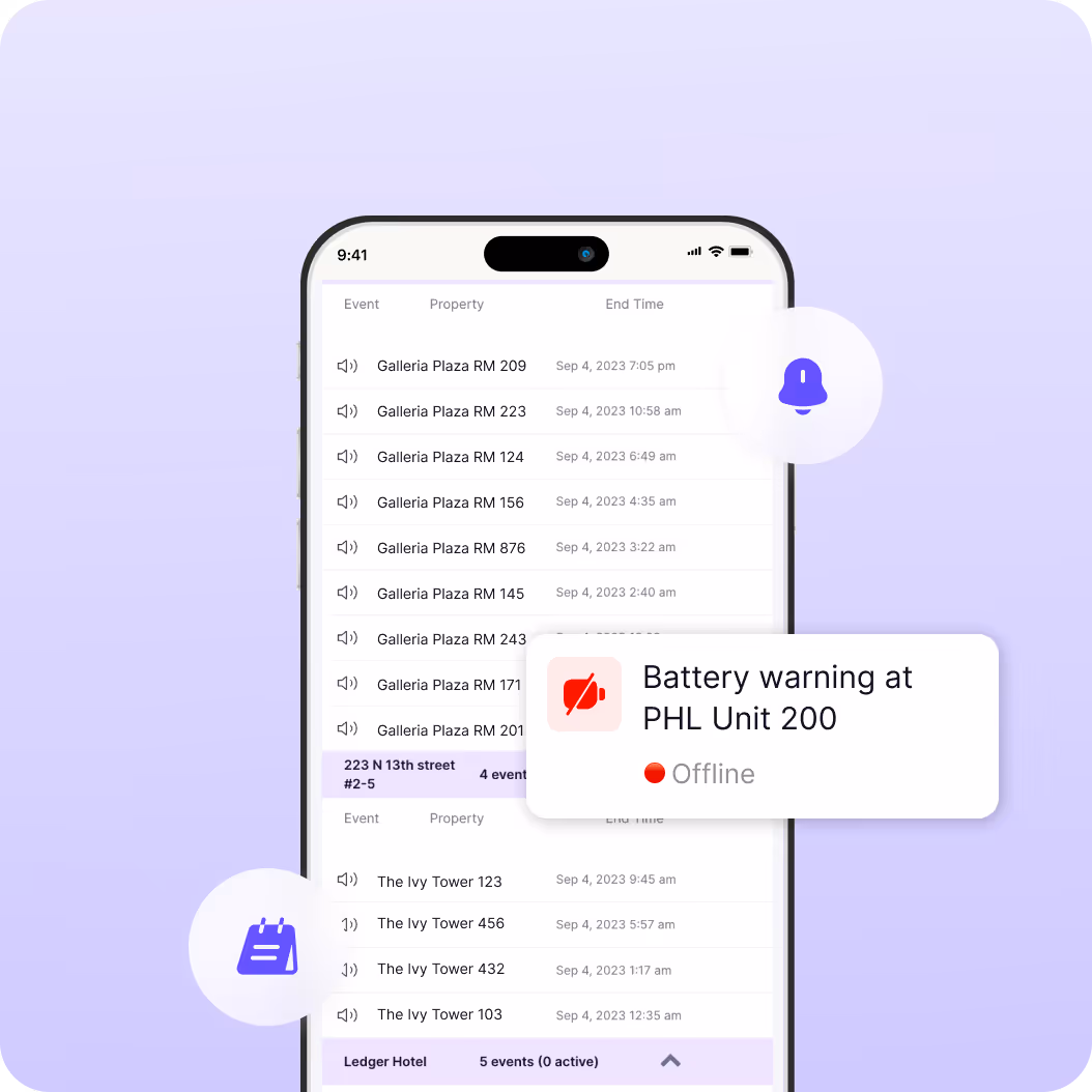Intégrez serrures connectées, thermostats, éclairages intelligents, enceintes et bien d'autres appareils pour faciliter leur gestion à grande échelle et offrir aux clients des contrôles intuitifs depuis leur téléphone.